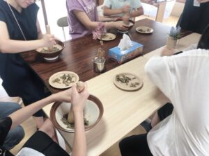 もぐさを使った蚊取り線香づくり。形やデコレーションに個性が出ます!