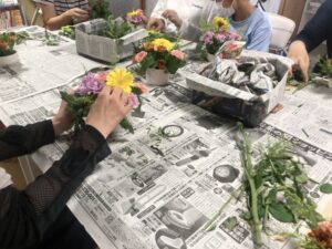 重陽の節句に合わせて菊の花を使ったフラワーアレンジメントを行いました。