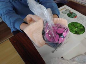後半は、災害時にも役立つコップ半分のお湯でできるホットタオルを体験!あったまったホットタオルでツボを温めることで心と身体を整えられます。