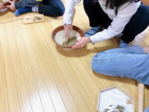 始まりはいつもと同じ、もぐさ擦りすりから!