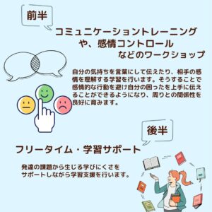 将来社会に出た時に必要なコミュニケーションや感情のメタ認知の部分を中心に学んでいきます。
