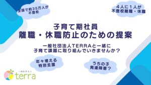 当法人では企業様の不登校離職・休職防止に向けた活動をお手伝いします。